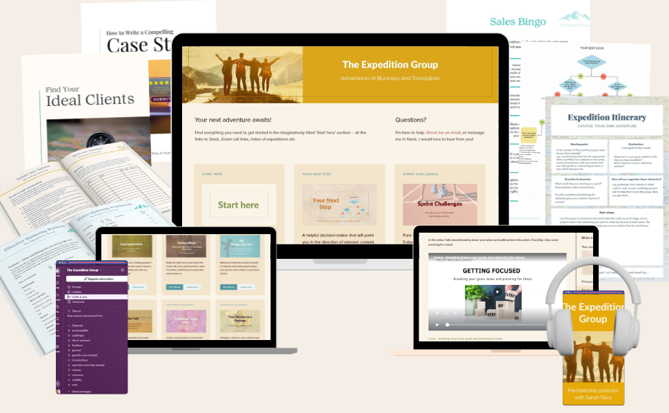 The Expedition Group is filled with training and challenges that cover a range of inbound and outbound marketing and business topics. Everything is designed especially for translators with one goal in mind: Greater job satisfaction, better clients, and making sure you are equipped with everything you need to tackle those inevitable business surprises that pop up along the way.
